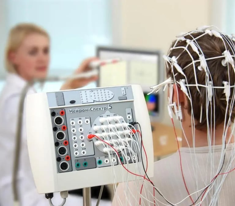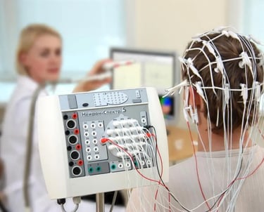 Es un estudio que mide la actividad eléctrica en el cerebro mediante pequeños discos de metal (electrodos) colocados sobre el cuero cabelludo. Las neuronas cerebrales se comunican a través de impulsos eléctricos y están activas todo el tiempo, incluso mientras duermes. Esta actividad se manifiesta como líneas onduladas en un registro electroencefalográfico.